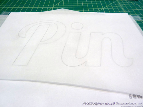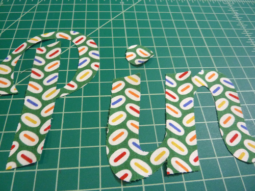 - Cut a piece of fusible web a bit larger all around than the word. Place the fusible web over the design template, fusible side up.