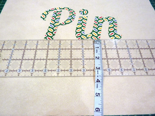 - Don’t forget to check side to side as well. These letters should be about 4½” in from each raw side edge. We say “about” because each word will be slightly different based on its letters, but all three should be centered.