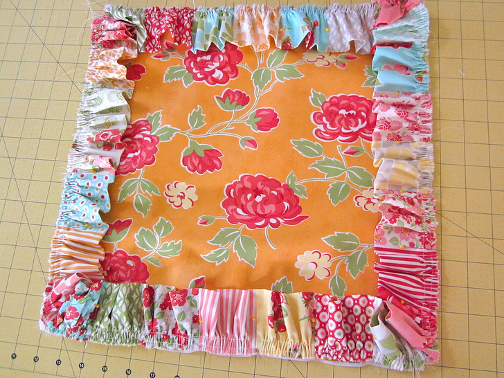 - Machine baste the ruffle strip in place around all four sides.