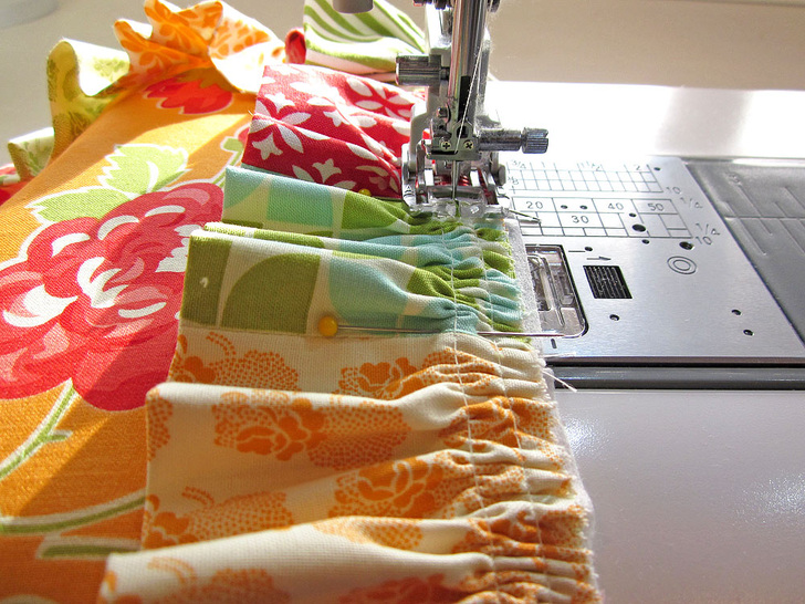 - Gather the entire length of the ruffle to the 64″ perimeter of the pillow front. You can gather using a traditional double row of basting stitching (our choice for this project) or try a Ruffler Attachment.