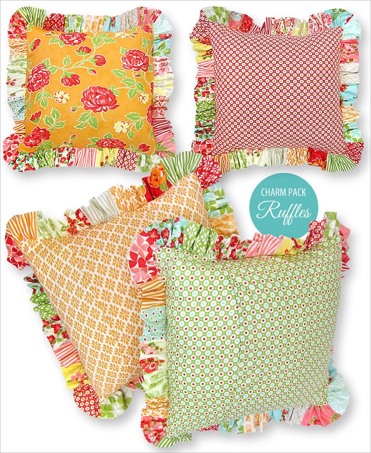 Always inspiring. I love this pillow pattern. Using charms for the ruffle is such a great idea.