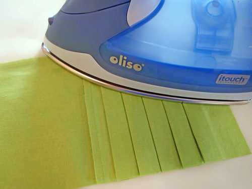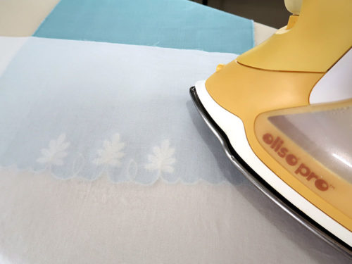 You can either lightly dampen your pressing cloth or use it dry. When using a damp cloth, it’s better not to use the steam setting on your iron. It’s always a good idea to test your fabric before going too far to be sure the heat on your iron is set appropriately.