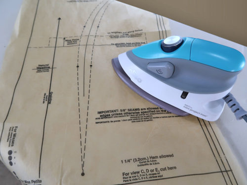 It’s also helpful to press your pattern pieces with a warm iron. This is especially helpful with the tissue type patterns where wrinkles can cause you to cut wildly distorted pieces.