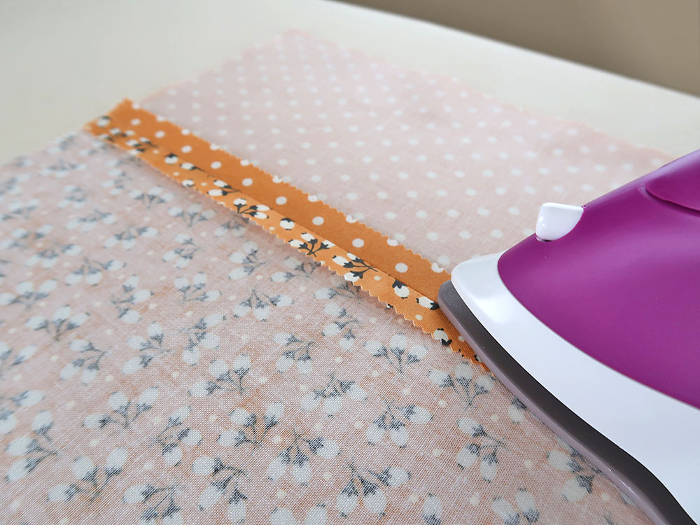 - If you’re pressing a seam on the bias, your iron should be at a 45° angle to the seam and along the straight grain to avoid distorting/stretching the fabric.