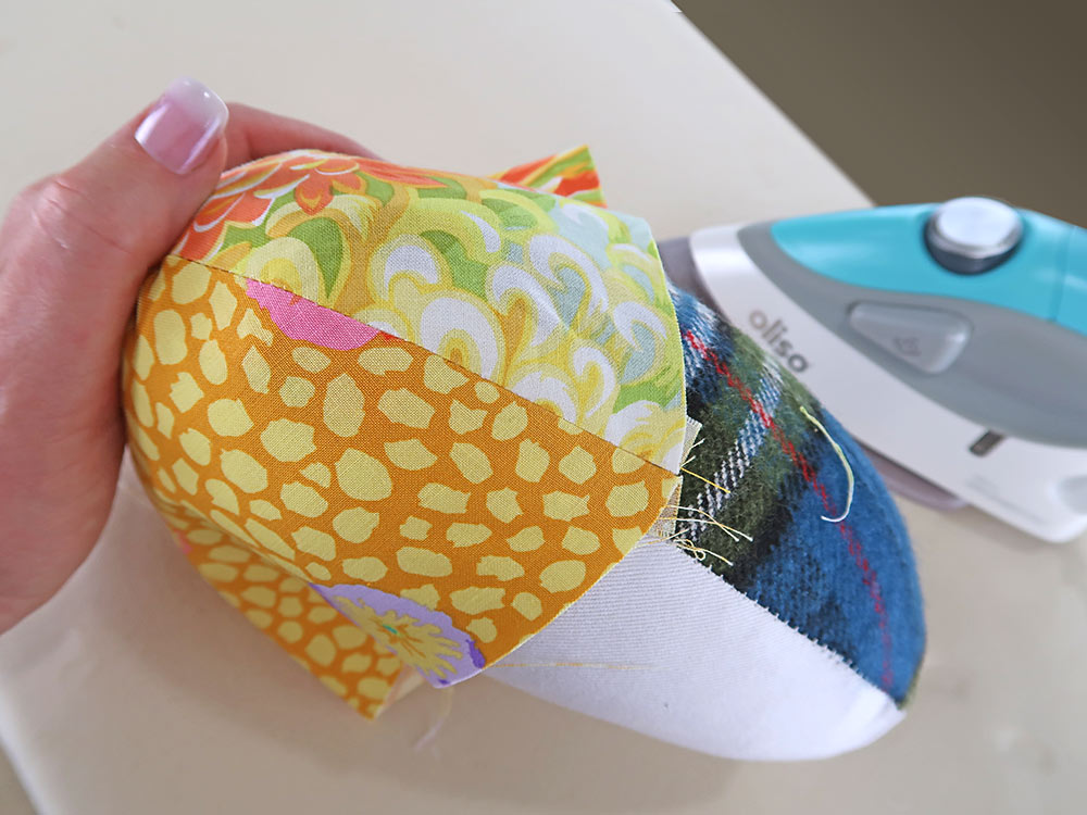 Not everything is perfectly flat. When you’re making something with a curved seam, using a pressing ham as your pressing surface will help prevent puckered seams because you can maintain the shape of the curve while you press. Hams come in a variety of shapes to best fit your project.