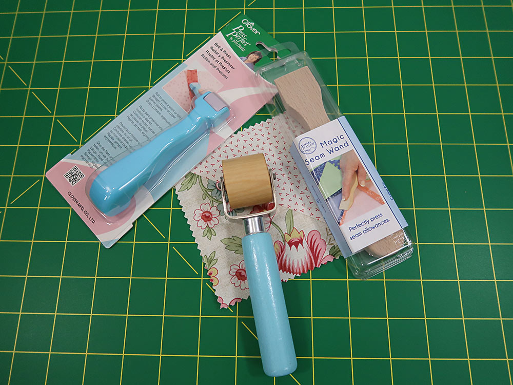 As a step up from finger pressing, there are a number of clever seam rollers and wands that increase the ability to flatten a seam without heat, such as the Quick Press Seam Roller by Lori Holt of Bee in my Bonnet.