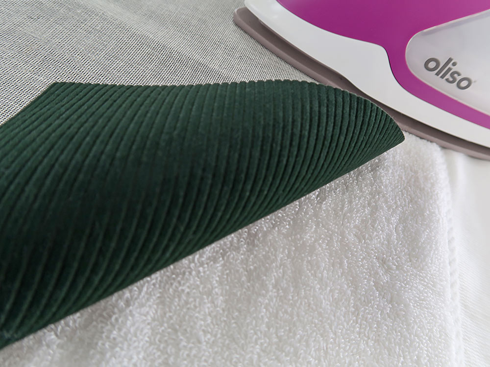 - Fabrics with a nap, like corduroy should only be pressed from the wrong side using a light touch. It may help to lay a clean fluffy bath towel on your ironing board, place your napped fabric face down on the towel, then press. This is also a good option for pressing appliquéd items.