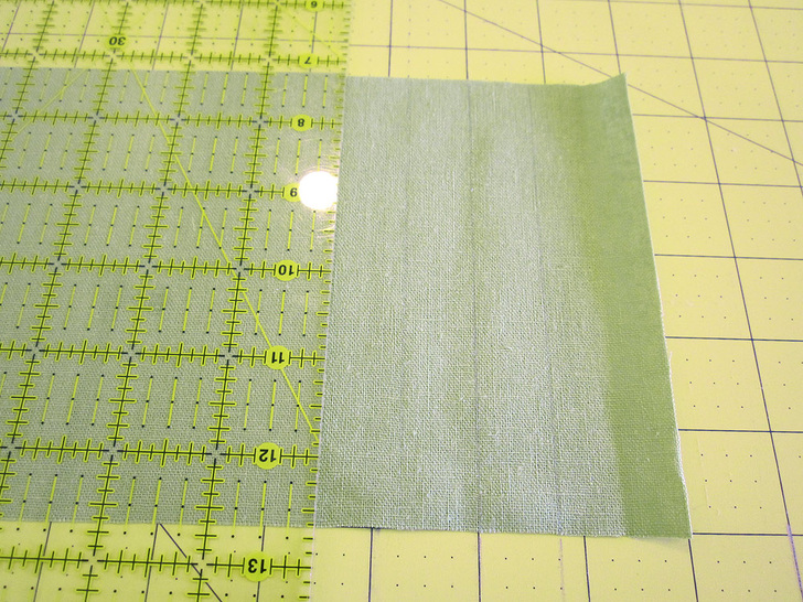 Our sample is made in Brussels Washer Linen Blend in Pear from Robert Kaufman Fabrics. It’s such a fresh and pretty, but there are many other options from which to choose. You might want to check out Robert Kaufman’s Washer Linen Blend in Thistle or the Robert Kaufman Essex Linen Blend in Blossom.