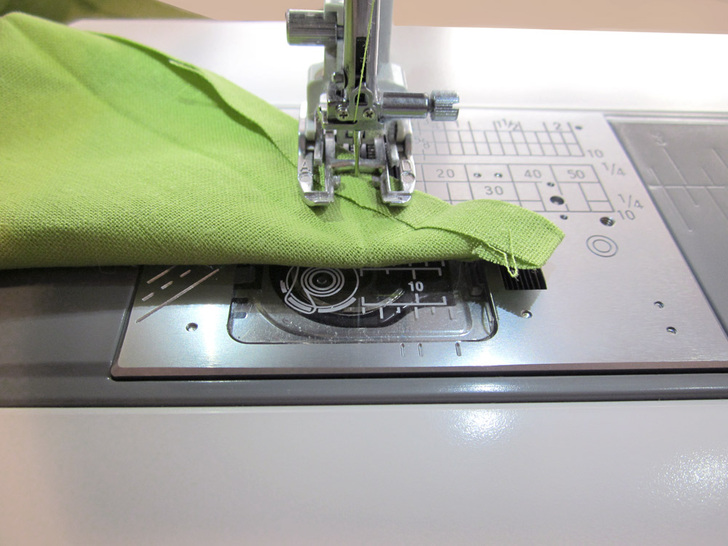 - Edgestitch along the folded edge, pivoting at each mitered corner.