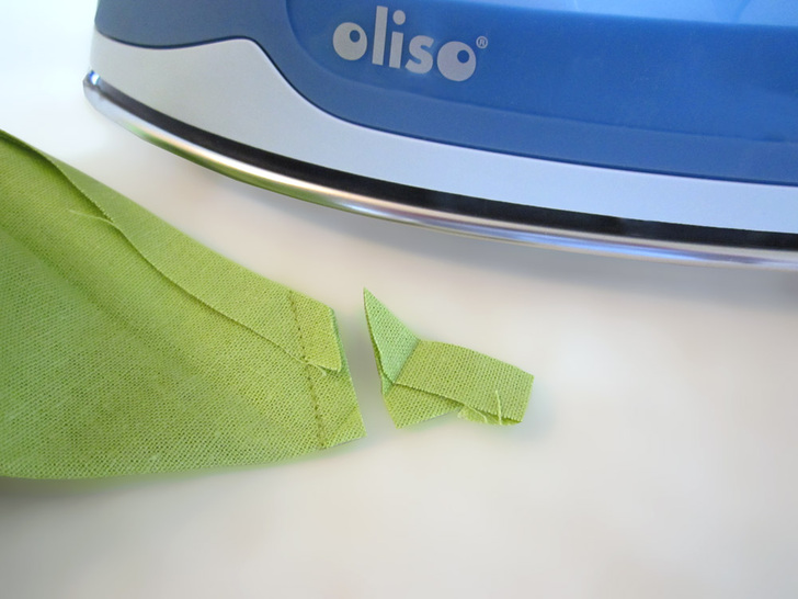 - Open and smooth the seam. Turn the corner right side out. Press to create a perfect miter. Repeat for the remaining corners.