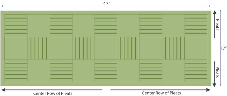 - Along each 5½” x 13″ rectangle, create five ¾” knife pleats. Mark for the first fold at 1¼” from the end with each additional mark spaced ¾” apart. The last marked line should be 1¼” from the opposite end.
