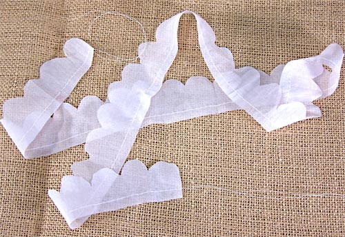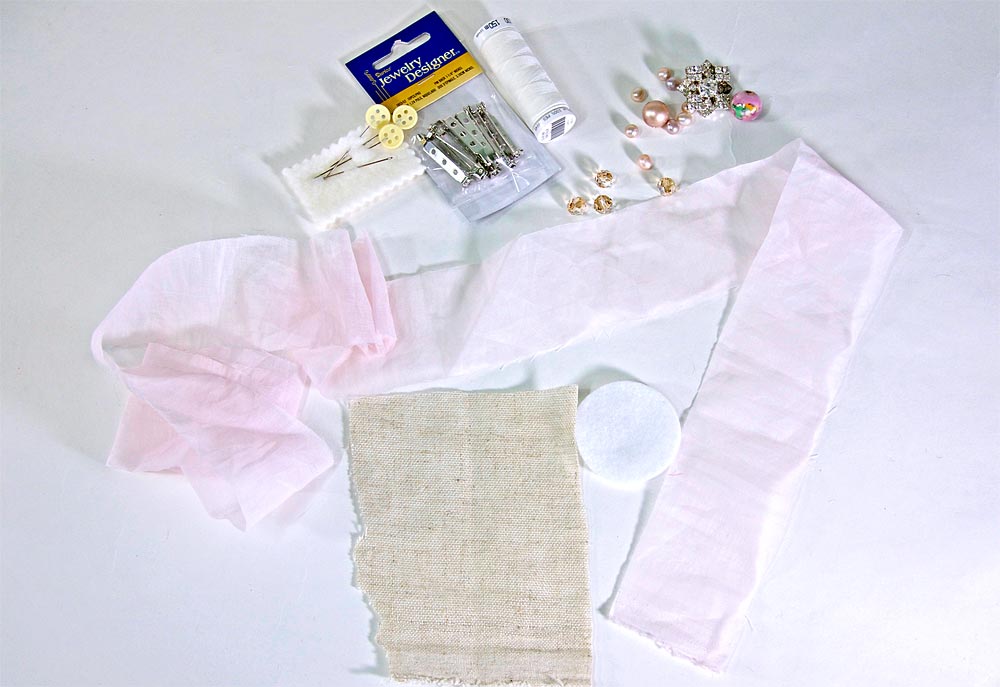 - ONE 2″ wide x 44/45″ long strip (selvedge-to-selvedge); we used pastel cotton batiste for our flowers