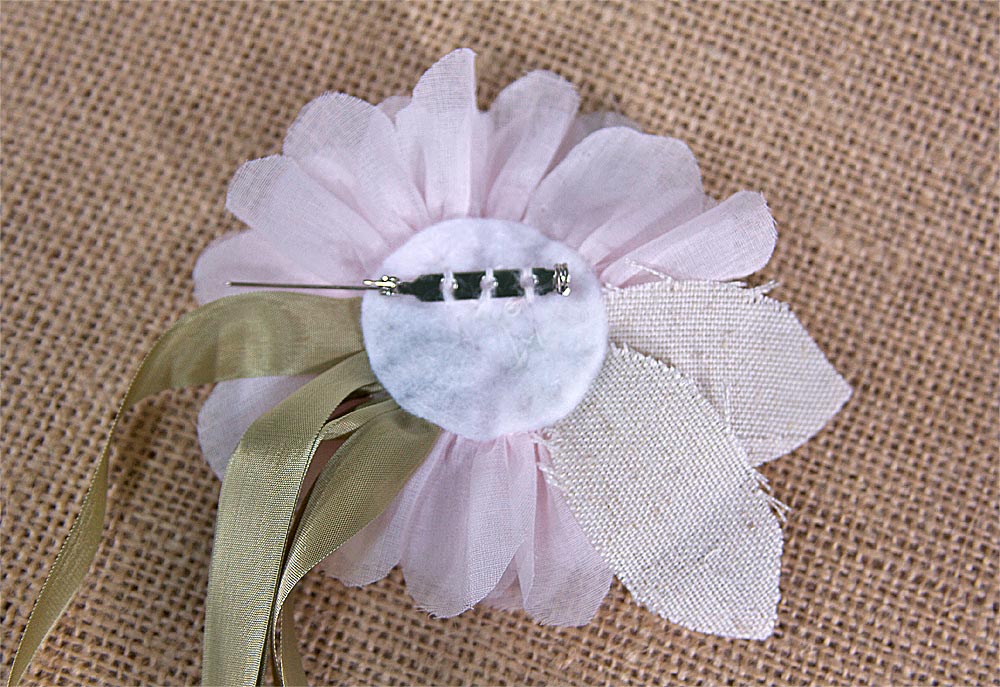- Sew the pin back to the flower. Attach it towards the upper end of the felt circle so it won’t tend to droop once pinned.