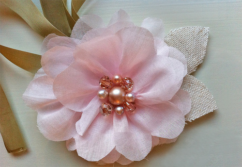 As a little girl, I liked to watch my mother get dressed up to go someplace special. On the top shelf of her closet, she kept a round, paper-covered hatbox. Inside were a half dozen lovely millinery-quality flower pins, each carefully wrapped in tissue. The finishing touch was pinning a flower to her dress or the lapel of her jacket. My favorite was a big rose-colored peony flower made of woven fabric with several pale green, ribbon-wrapped stems.