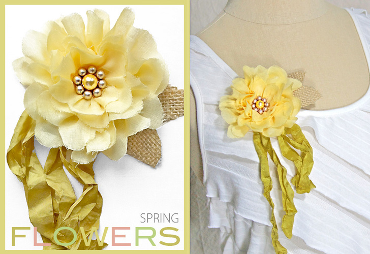 The fresh blooms of Spring are always an inspiration. Celebrate by creating your own custom flower to wear on your jacket, in your hair, or pinned to your bag. We chose yellow for our pretty pop of color, one of the season’s trendy “citrus colors,” as well as a beautiful blush pink. Go bold and showy or soft and subtle – just like nature itself.
