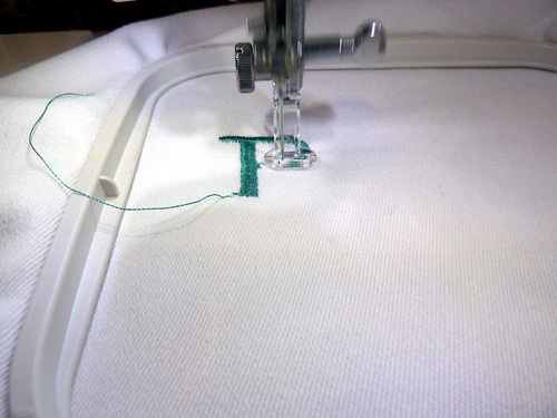 - Hoop the pocket fabric and stabilizer, and monogram your chef’s name.
