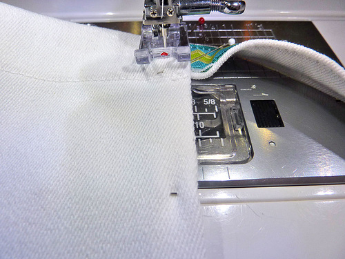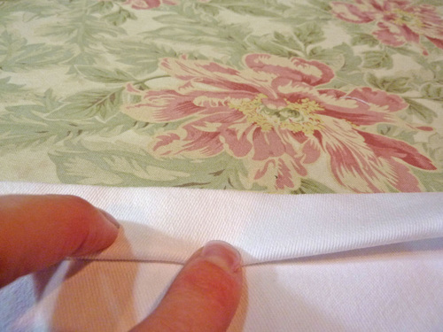 NOTE: Remember, the side hems are indeed folded into place; they are simply not yet stitched in place. Your top hem will “tack” them in place.