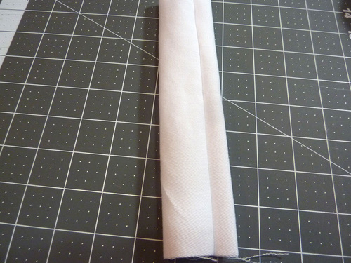 - Fold the raw edge into the crease…