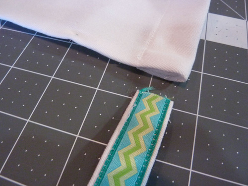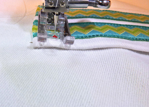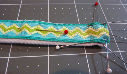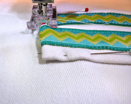 - Adjust the fold of the ribbon as needed so the ribbon and fabric are perfectly flush.