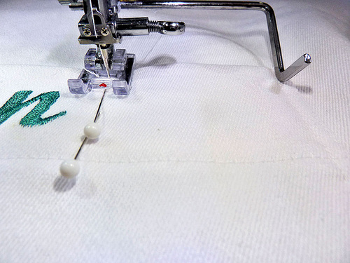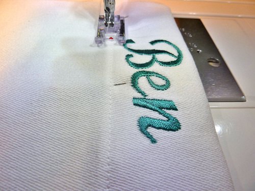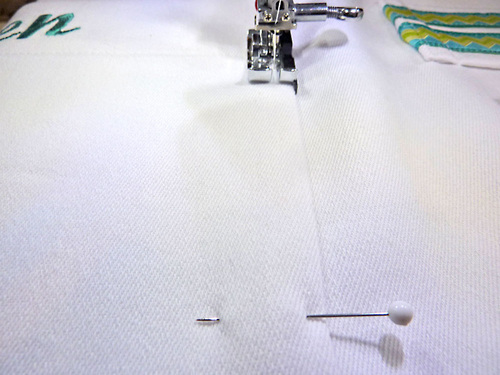 - Topstitch the hem in place. This seam should run approximately ¼” from the bottom of the lettering.