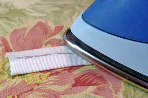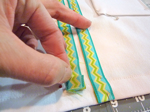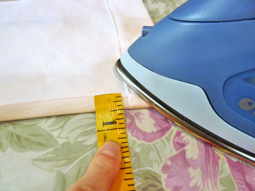 - At the top and bottom of each ribbon, turn back the raw edge ½”. The folded ends of the ribbon should be flush with the top and bottom hems.