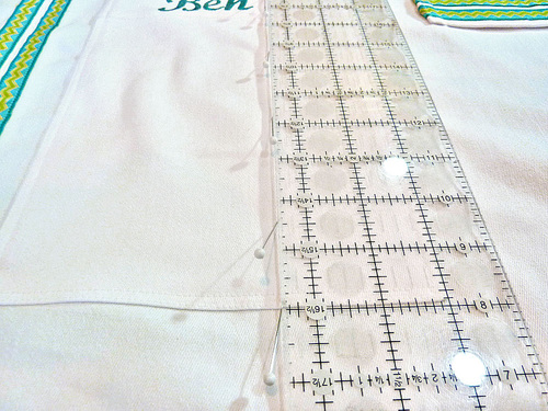 - Trim the monogrammed pocket to 8″ wide x 13″ high, keeping the upper left position of the name intact.