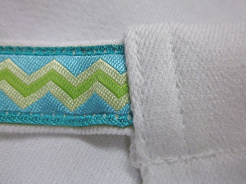 - As with the towel loop seam, and to best secure each tie, we recommend edgestitching an additional short seam just within the width of the top hem.