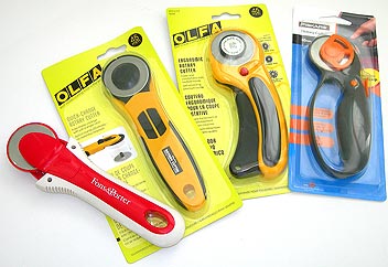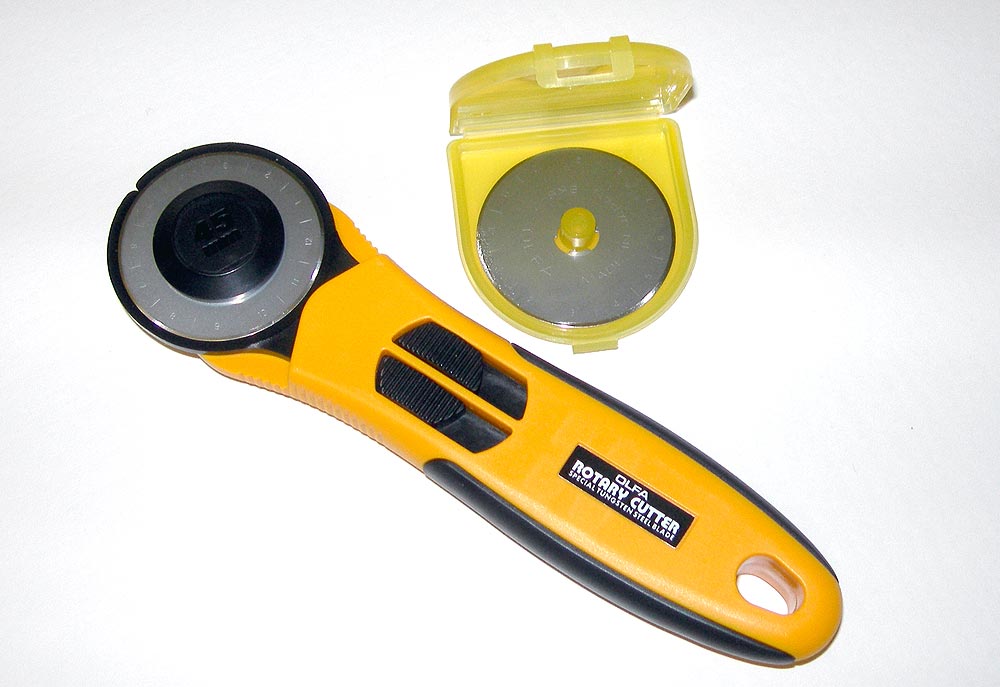 Rotary cutters are easily available online and at your local fabric store. If you’d like the read more about options and styles, the major manufacturers are: