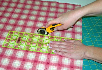 The other technique key to safe rotary cutter success is to always cut away from you. Never cut toward your body. You will be putting a good amount of muscle behind your cut, and you never know when the blade might slip. If that happens, you want to be sure the blade is headed for the wall and not your stomach!