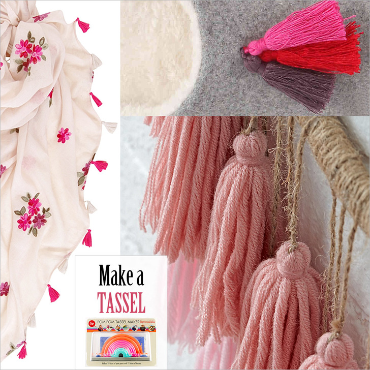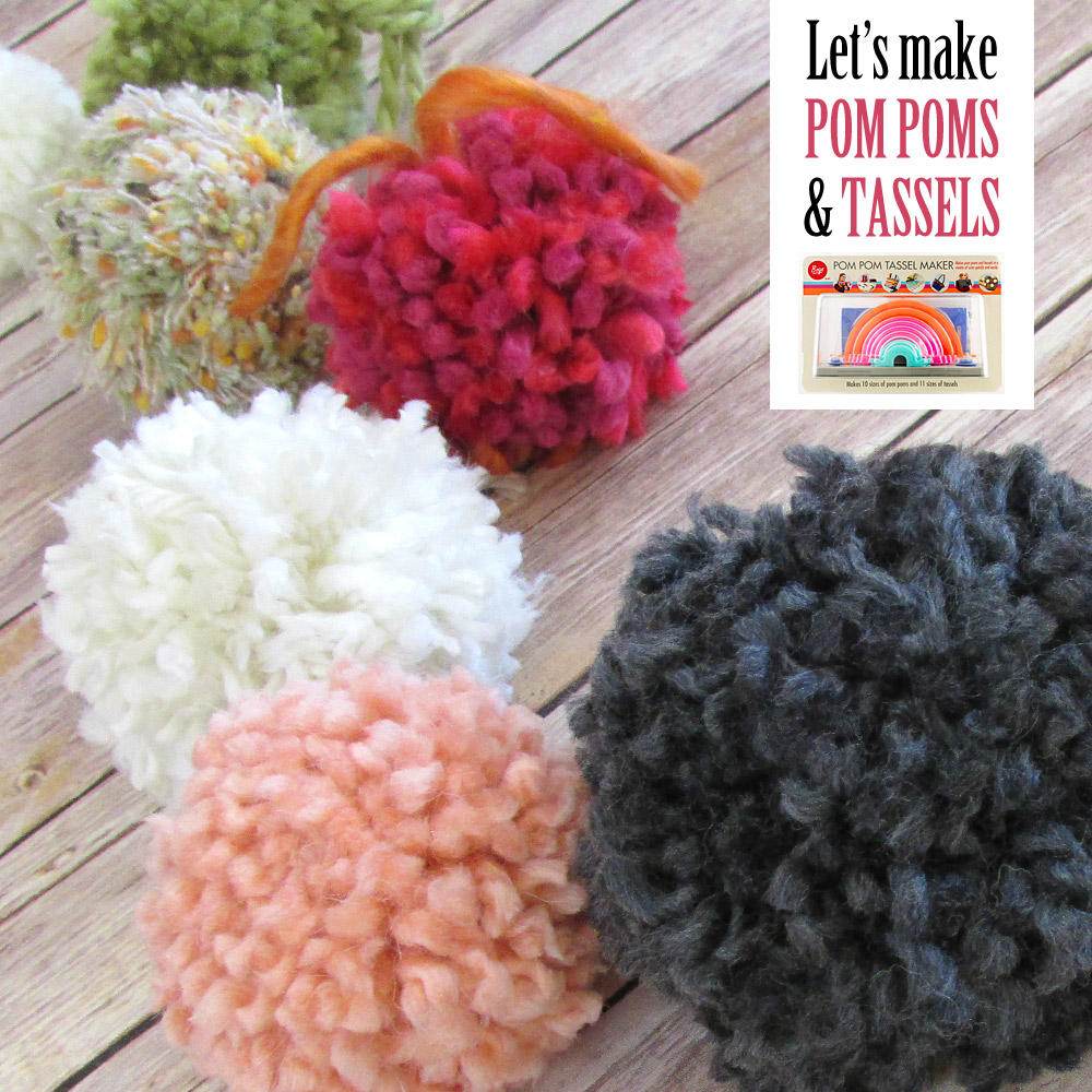 There are lots of embellishment ideas out there, but for our money, it just doesn’t get much more fun and versatile than pom poms and tassels. If you’re a regular Sew4Home follower, you know we’re fans of both, and have already done our own step-by-step tutorials on making each. But we’re always up for learning new ways, and so were quite captivated with this all-in-one kit from Boye that makes poms and tassels in a huge variety of sizes. Our super creative friend, Michele Muska sent us the kit to try along with a bunch of samples she’s made using the tools. It’s an embellishment explosion!