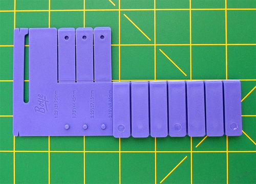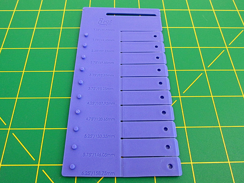 The tool has 10 tabs. Flip back however many tabs you need to create the length you want from 6¼” to 1¼”. We used 2¼”.
