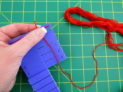Find your main skein of floss. Place the free end just a bit above the top of the tool.