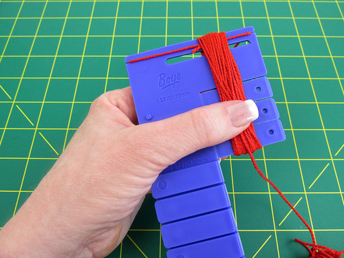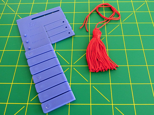 The traditional way to make a tassel is with a simple cardboard rectangle cut to the size you want your finished tassel to be. This Boye tool takes that concept and makes it faster and more flexible so you can use just one tool for lots of different sizes.