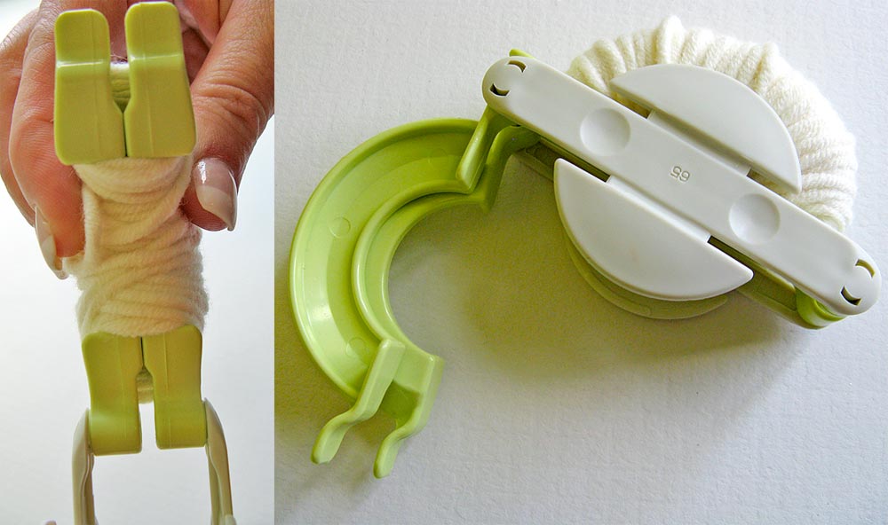 For our pom pom demonstration below, we worked with the Large pom pom maker, using the smaller of the two tools.