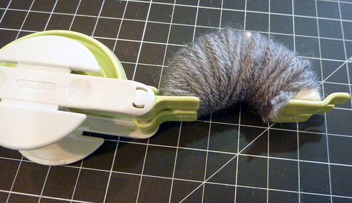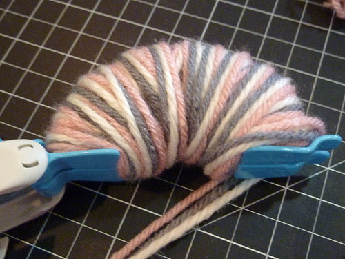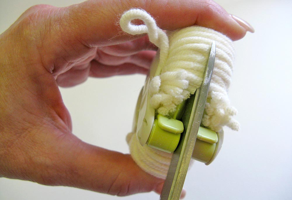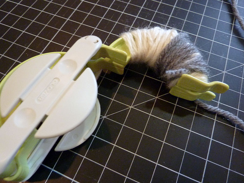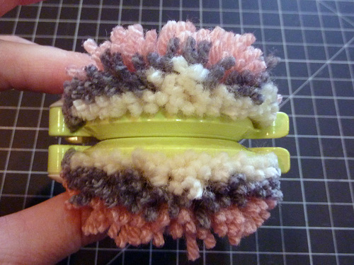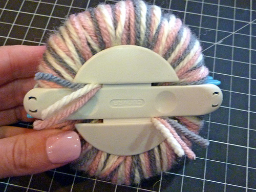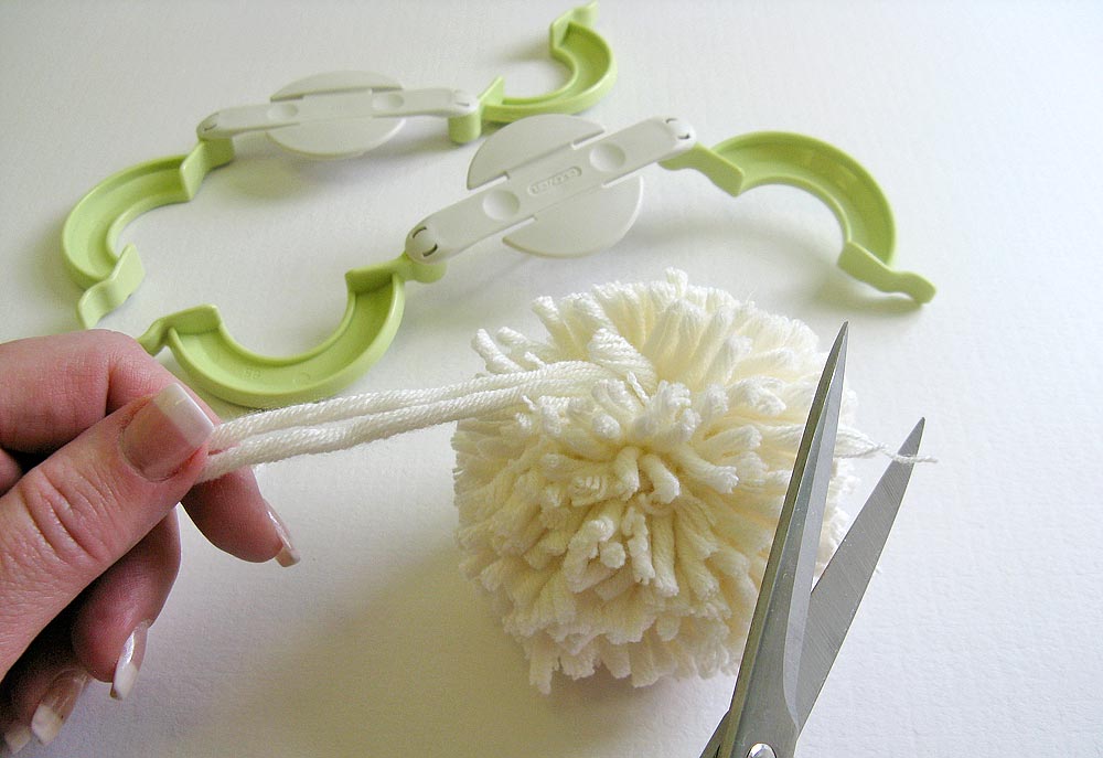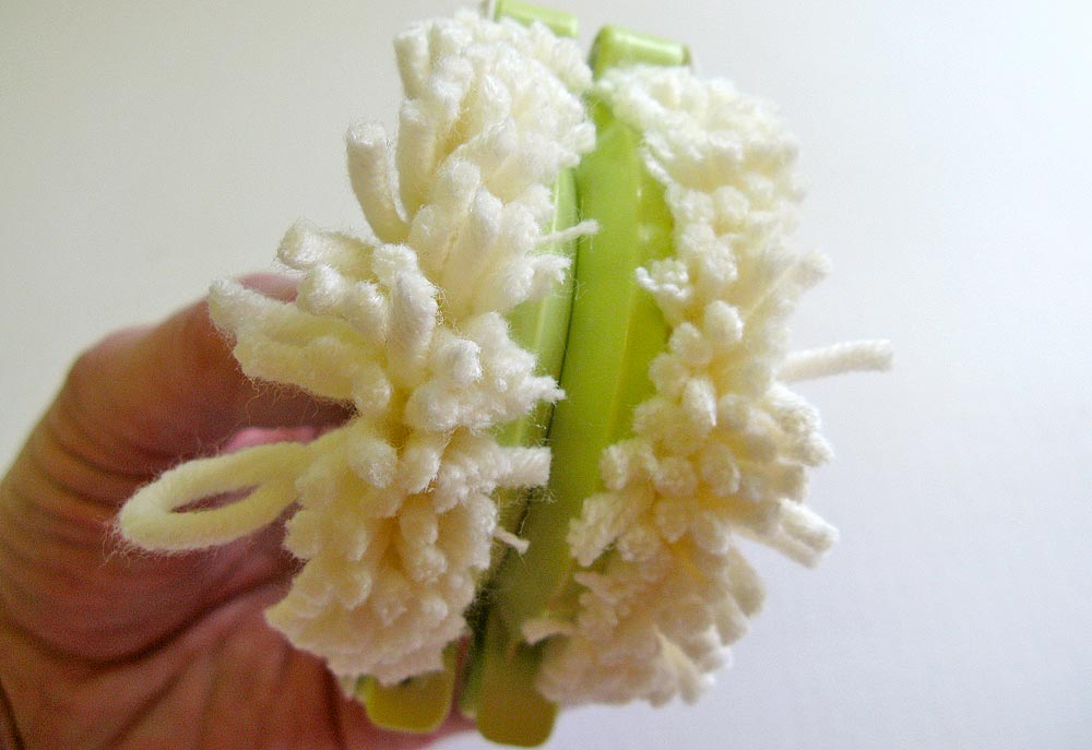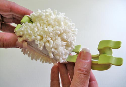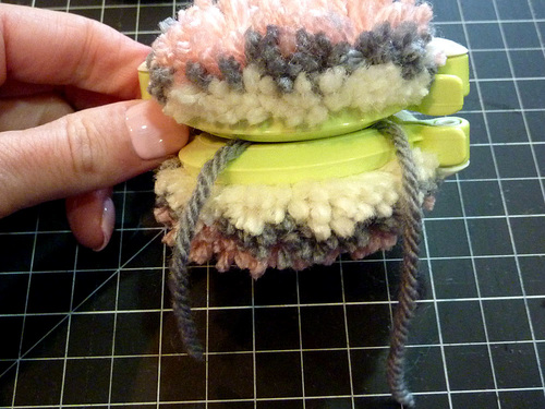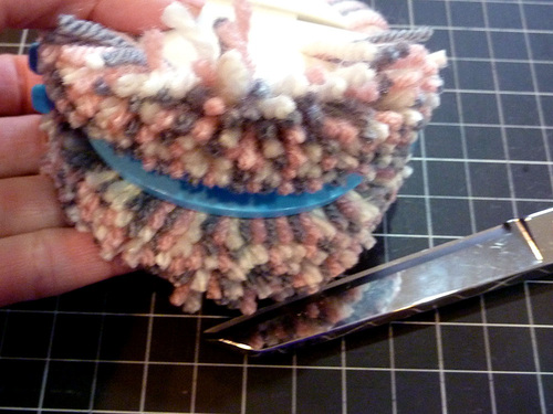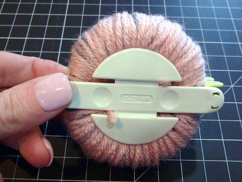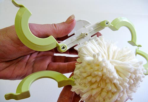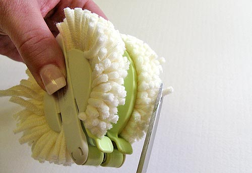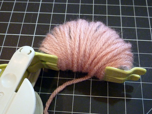8. While the pom is still in the tool, trim any obviously long yarn tails.