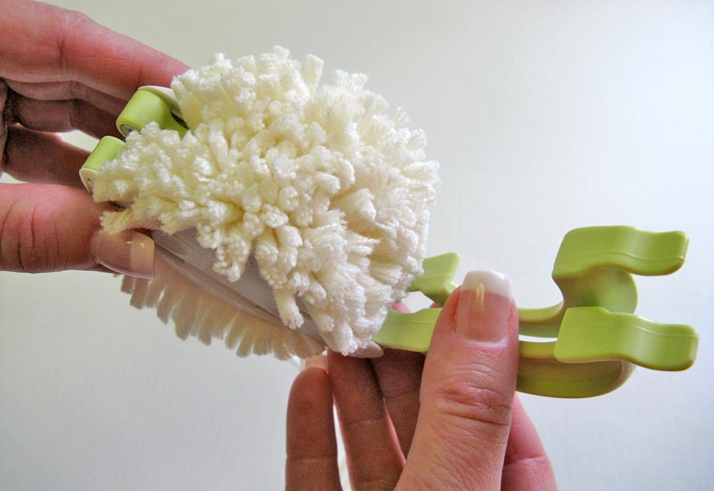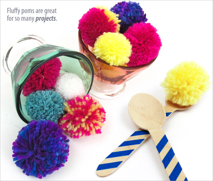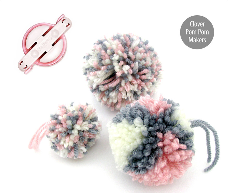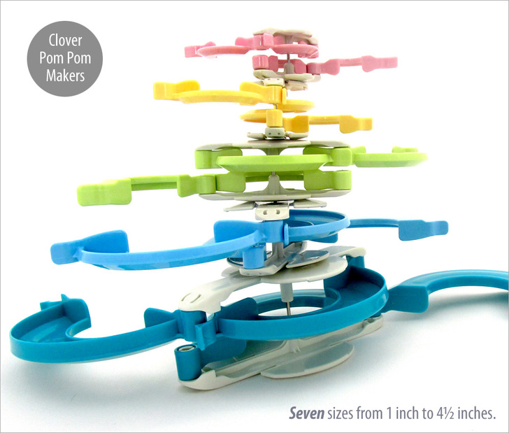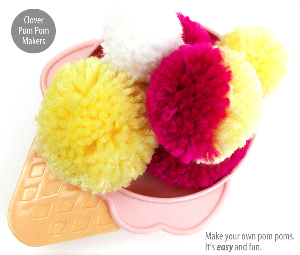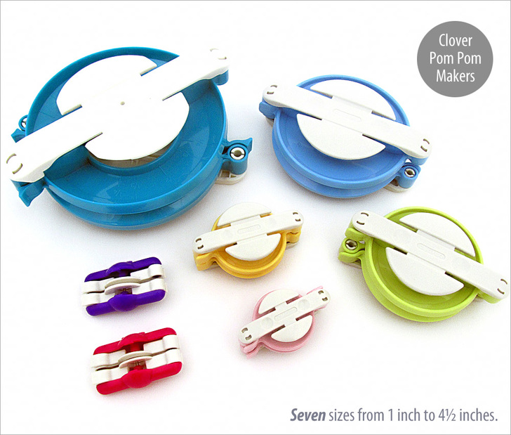 Fluffy poms are great for any number of projects. We’ve used them to add extra whimsy to an already fun project, as well as to juxtapose a bit of casualness against the elegance of fine cotton or velvet – kind of like wearing Converse® high-tops with a tuxedo. A little bit of levity can add just the right touch. Whether you need one great pom or dozens, a Clover Pom Pom Maker simplifies the task, and each one will be as perfectly puffy as the next. Find some yarn and get ready to get fluffy.