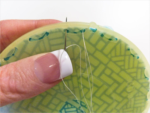 - As above when using the tool, cut a piece of thread that is about double the length needed to stitch around the circle.
