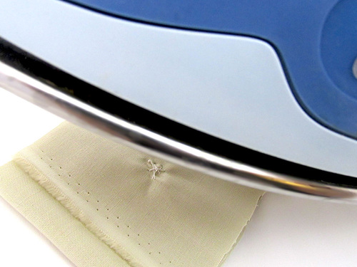 Working from the back, hold the iron just above the knotted thread. Steam and then continue to hold the iron just above the fabric for 10 seconds.