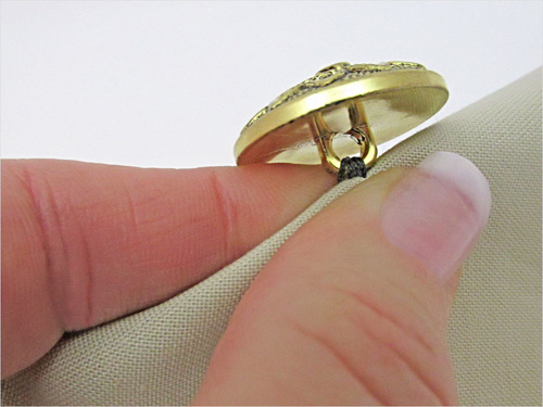 @Cheryl – you can certainly wrap the thread after stitching to create a bit of a “shank” on standard two-hole or four-hole buttons, and then heat to seal. The thread sews beautifully, just like standard button thread, allowing you to sew on the button in your preferred style.
