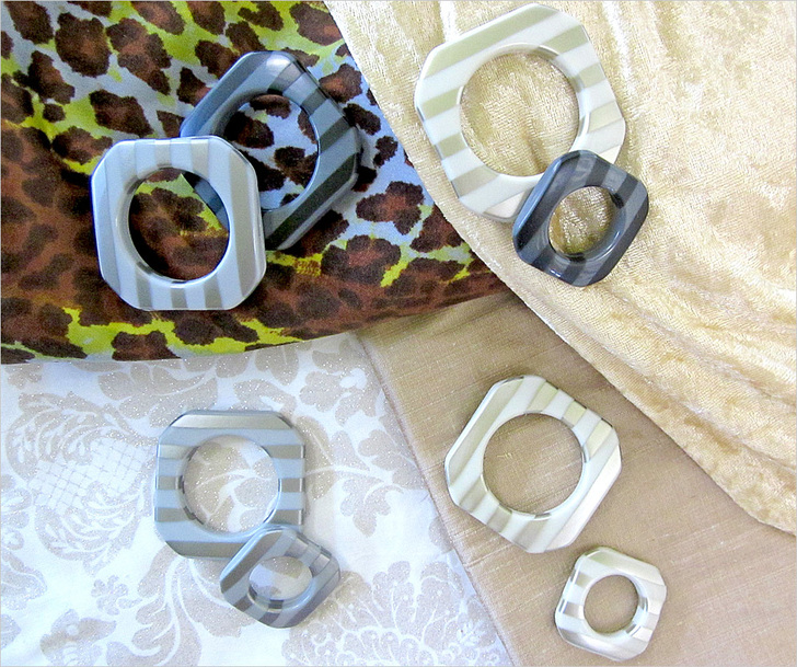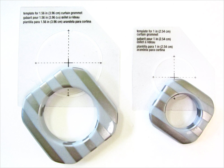 A hole is simply a circle with depth. Cover the edges with a ring, and it becomes… a grommet! Here are Sew4Home, we are grommet fans, or as we prefer to be called: “grommeteers.” Grommets look great, adding texture and dimension. But they’re also quite functional, providing a stable opening for a rod or a channel for cording. We’ve all seen metal ones, and they certainly have their place, but today, we’re talkin’ fashion grommets from Dritz® Home. These easy plastic grommets have been around for a few years, and we’ve used them on a number of our projects, but the color selection was pretty basic. Recently, Dritz® amped up the options to include dozens of cool colors, designs, sizes, and added an octagon shape as well as the standard circle. Trace, cut, insert and snap together. It’s as easy as that! There are no special tools required, just a pen and scissors. Let’s make some holes! And, if you are a S4H Newsletter Subscriber, you could win your own package to try. We’ll draw three winners!
