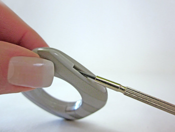 Now before you gasp at the inflexibility of these laundering guidelines, hang on… it is very easy to remove the grommets to clean your project, then snap them back into place. Simply find a small flathead screwdriver or even a letter opener. Slide the tool into the tiny slot on the side of the grommet. Twist slightly, and the grommet will snap apart.
