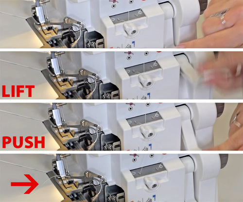 There’s a built-in, one-step converter to change from 3-thread to 2-thread applications. Really…. it’s just one step! Place your finger under the converter and flip it into position. Did we mention how simple this serger is to use?!