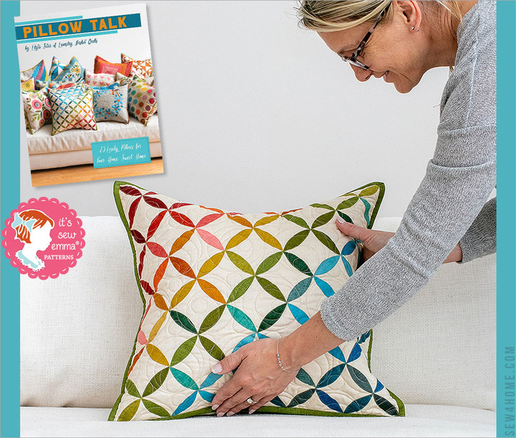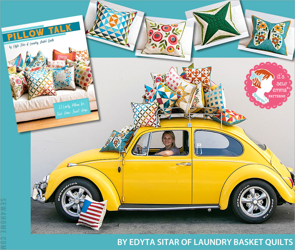 Who loves pillows? We love pillows! Actually, we think it’s safe to say that everyone loves pillows. How could you not? They’re soft and pretty, and their flat surface is the perfect foundation for design. The lovely and creative, Edyta Sitar of Laundry Basket Quilts has taken that pillow top design to a wonderful new level in Pillow Talk, her latest book with It’s Sew Emma. Read on to take a look inside at the 25 eye-popping pillows and discover the 25 companion Pillow Talk fabric kits available starting this month at Fat Quarter Shop.