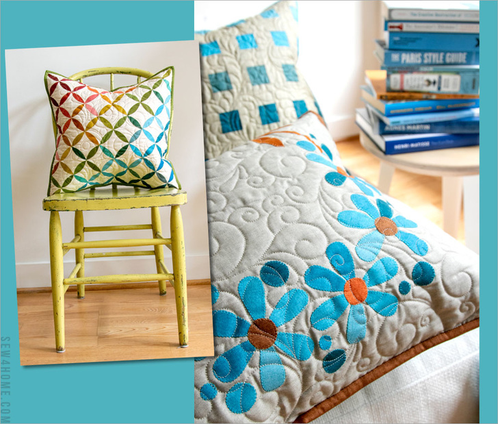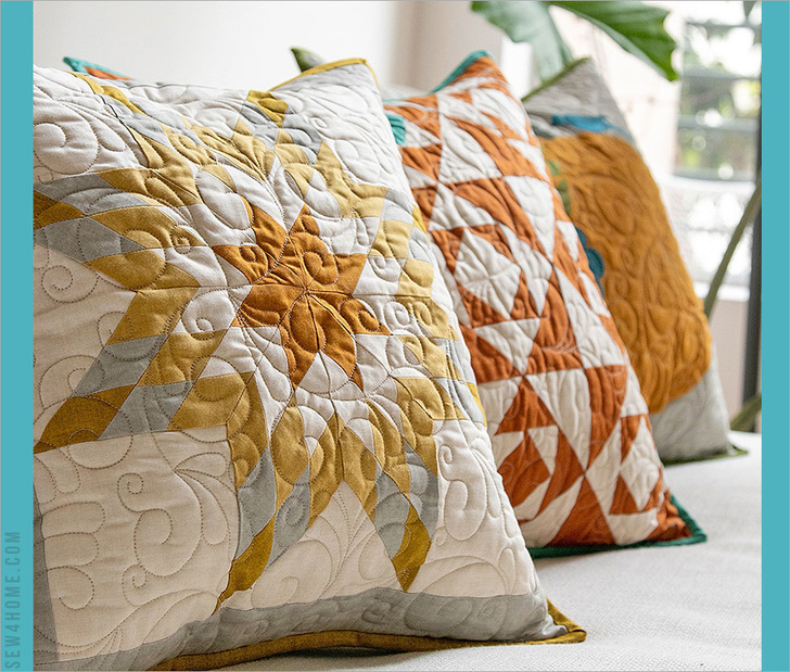 The pillow projects explore a variety of techniques from appliqué to paper piecing to traditional quilt blocks. And, each pillow is accented with gorgeous free motion quilting, which you can choose to emulate or use your own favorite quilting style.