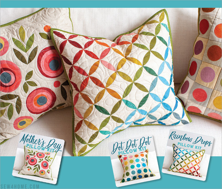 The kits contain the exact fabrics used in each sample pillow, but do not include the actual pattern; the patterns are exclusively available within the Pillow Talk book. It’s great to be able to work from a kit to recreate the same beautiful look and feel of the designer’s sample.