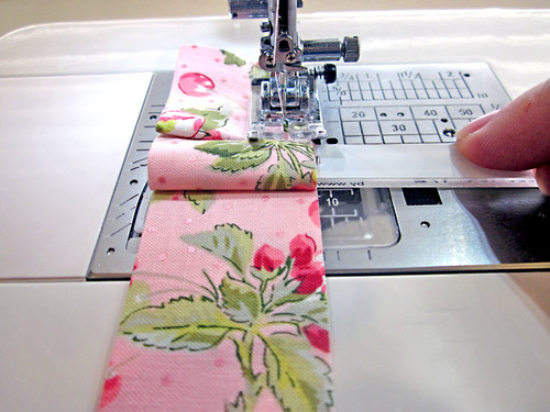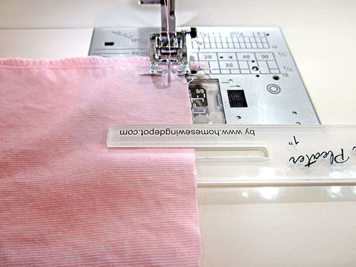 Slide out the Quick Pleater and stitch forward to secure your first pleat.