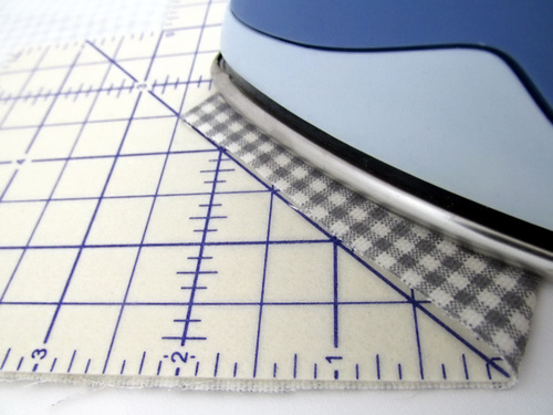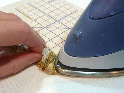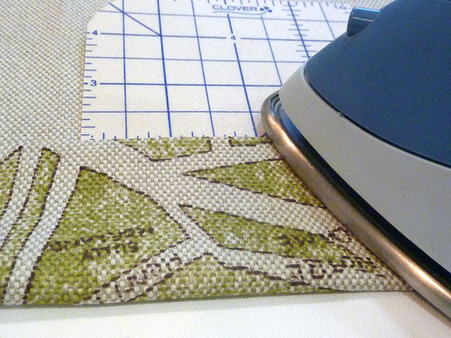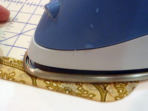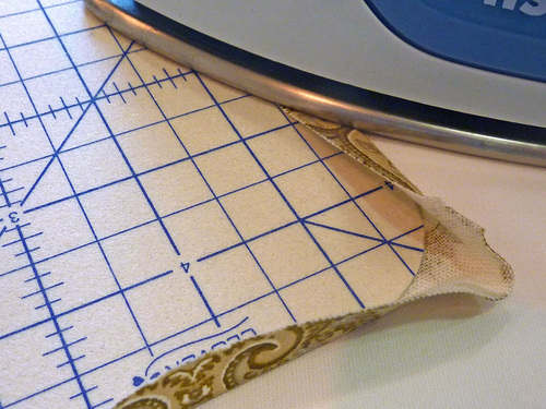- Fold in the corner fabric, pulling it slightly taut so it follows the curve of the Hot Hemmer.