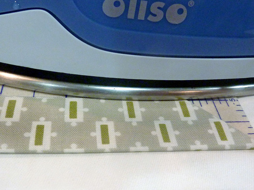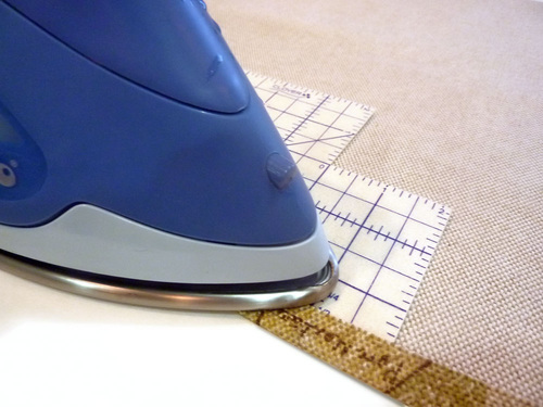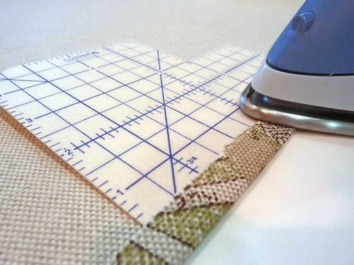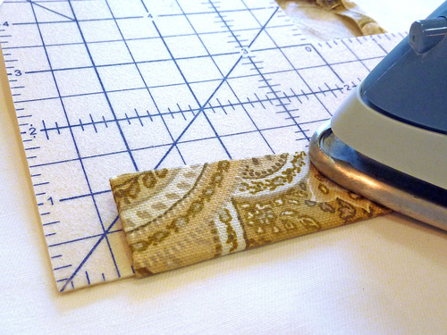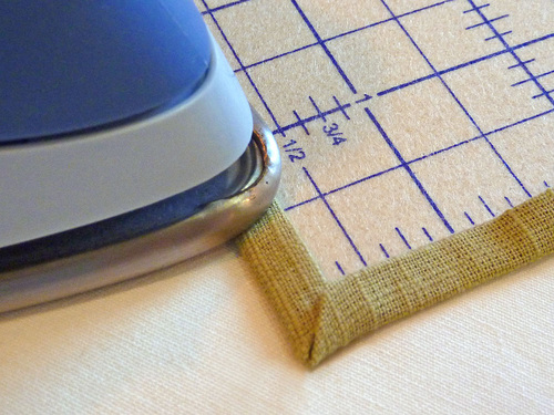 - Fold in the raw side edges to the ½” line on the Hot Hemmer, pressing in place as you go.