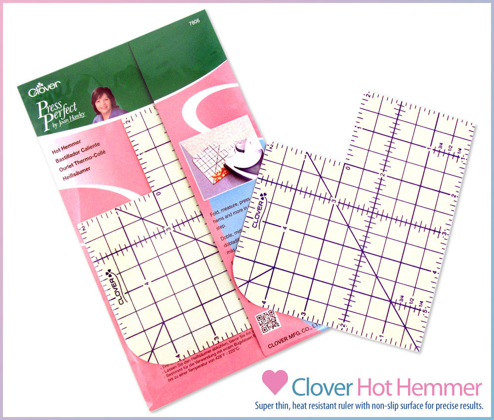 The Clover Hot Hemmer is a super thin, heat resistant ruler with a special non-slip surface that helps hold the fabric in place for the best, most precise results.