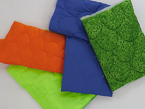 - Also for the clamshell quilting: the Janome Sew Comfortable Edge to Edge Template Set – we used the 3” clamshell ruler
